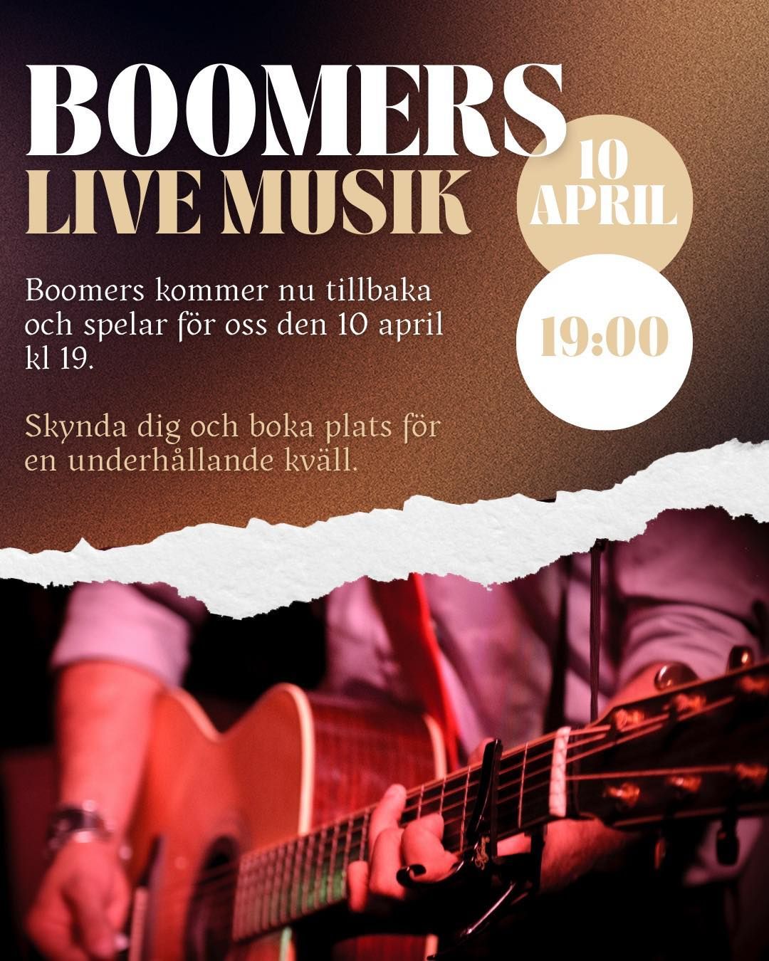 Vi är glada att meddela att Boomers är tillbaka för en fantastisk kväll den 10 april kl. 19:00! Kom och njut av en underhållande kväll med livemusik hos oss